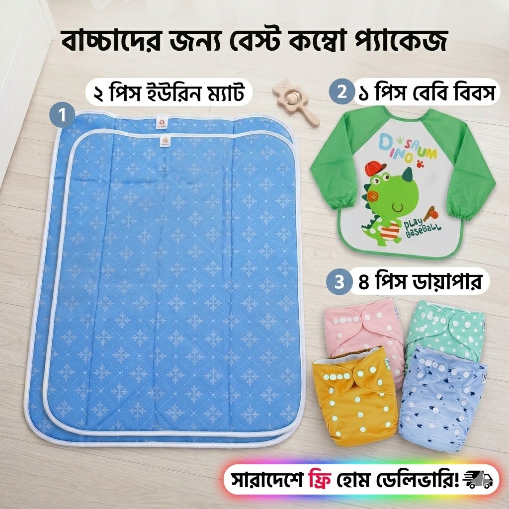 ৪ ডাইপার + ২ ম্যাট + ১ বিবস + ফ্রি ডেলিভারি